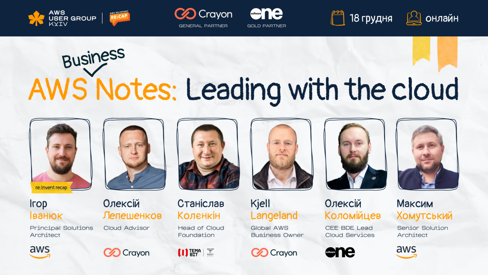 Modern cloud architectures are becoming more complex, and it is important for businesses to have a reliable IT infrastructure. AWS actively shares its experience through global initiatives and local events. This time, together with the AWS User Group Kyiv community, we invite you to AWS Notes: Leading with the cloud, where there will be speakers from both AWS and companies already working with AWS.