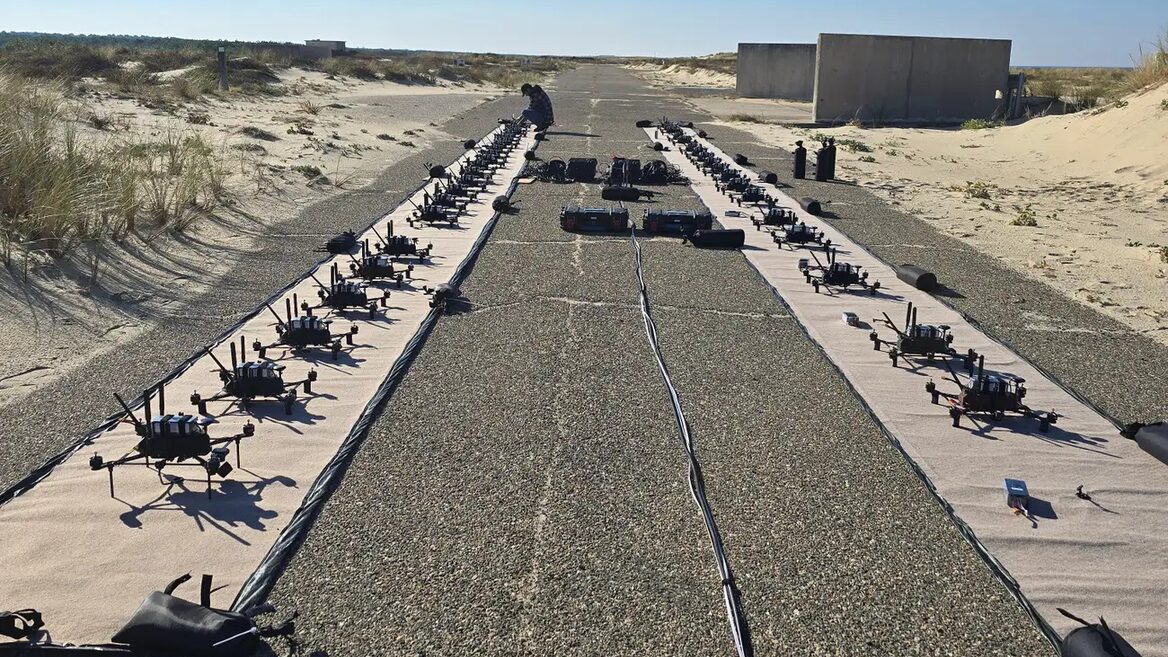 • Autonomy: The system utilizes AI to calculate the optimal interception trajectory, arranging the swarm into a “curtain” to detonate near the target.