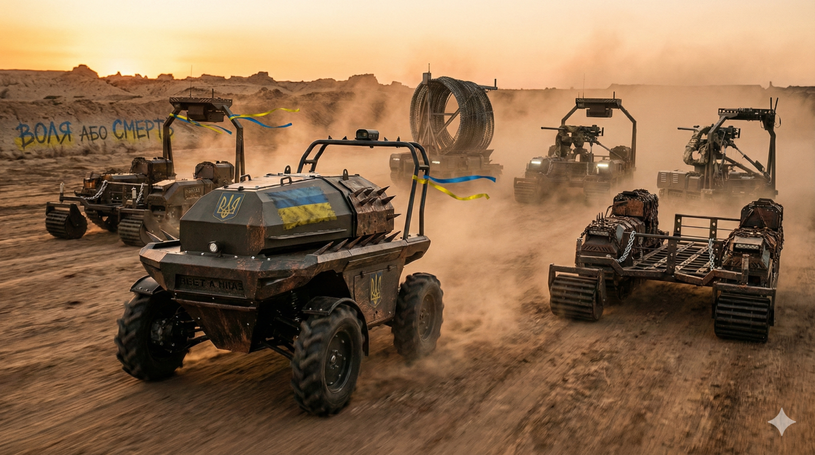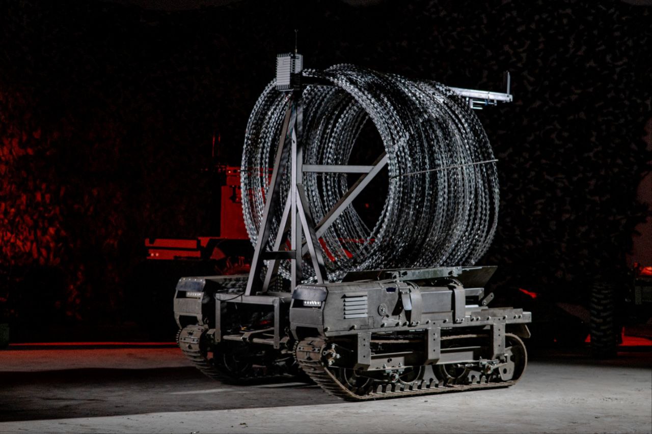The Spider: An engineering module that remotely lays 50 meters of “Yegoza” razor wire, securing perimeters without risking a single sapper.