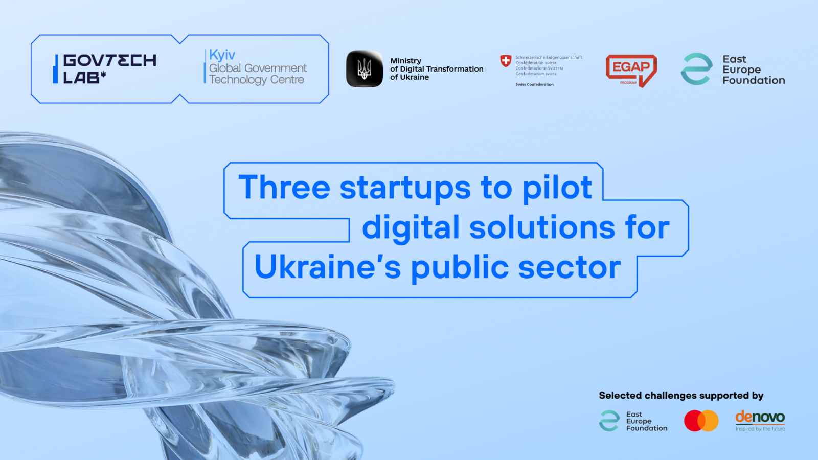 Disclaimer: GovTech Lab Ukraine is implemented by the Global Government Technology Centre (GGTC) Kyiv in collaboration with the Ministry of Digital Transformation of Ukraine, the World Economic Forum, and with the support of Switzerland within the EGAP Program (carried out by East Europe Foundation). Support for specific challenges is provided by Mastercard and East Europe Foundation, with infrastructure resources provided by De Novo.